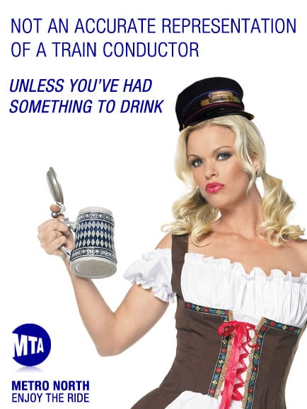 Hey, maybe Metro North could even do a promotion, touting the best reason to ride the train! Completely ignore the fact that the majority of people do actually have to drive their cars home after getting off at the train station. Replace those boring train advertisements, and do a little something like this: