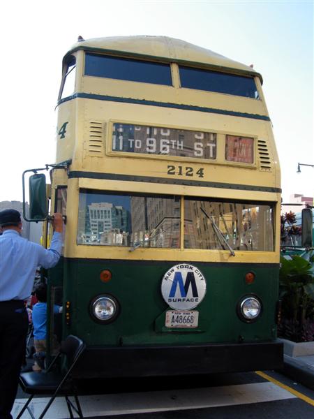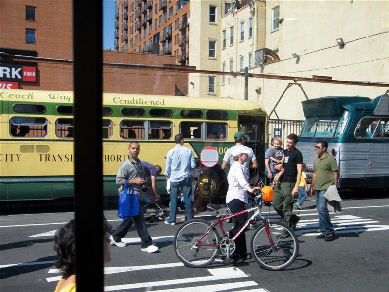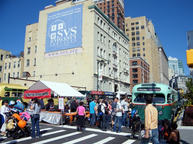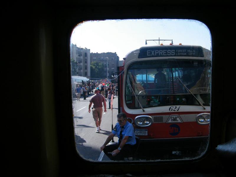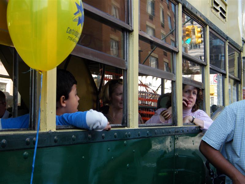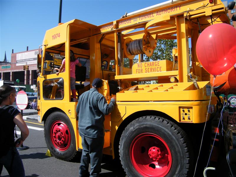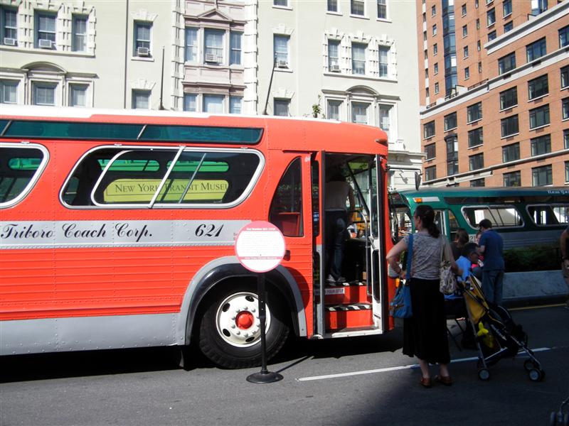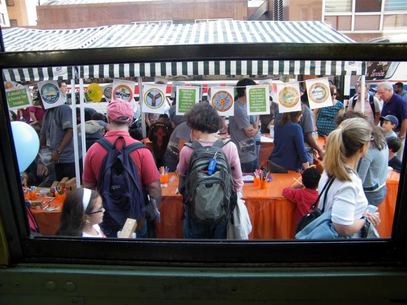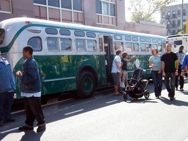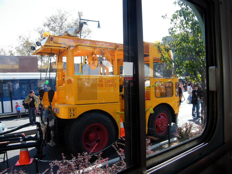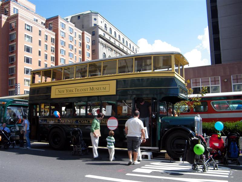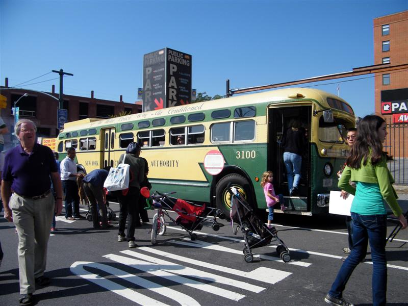 About a block from the museum the road was closed off to traffic, and the museum’s bus fleet was parked along both sides of the street. There were old buses, as well as more current versions. There was a tent for children to make and decorate their own little buses, and a table on which they could drive their creations. I swear I don’t think I’ve seen quite so many “mini-railfans” all in one place before… A child, who couldn’t have been more than five years old, pushed his bus/train while announcing, “This is a Brooklyn-bound Two Train! Stand clear of the closing doors!” I couldn’t help but laugh at that.
