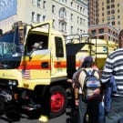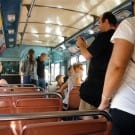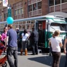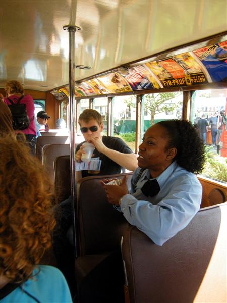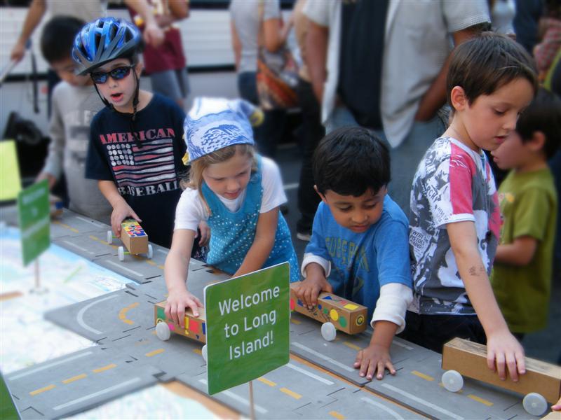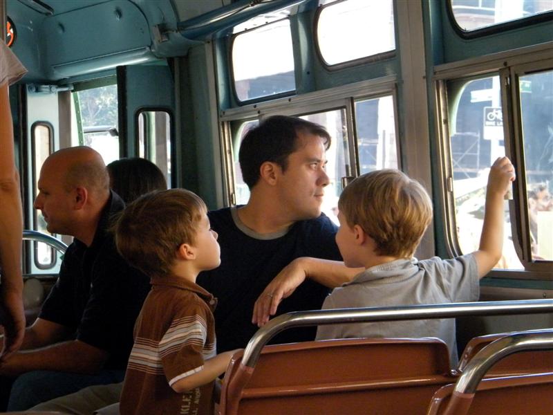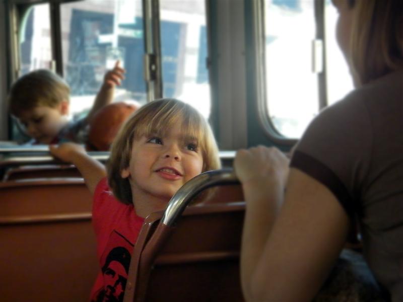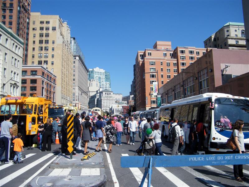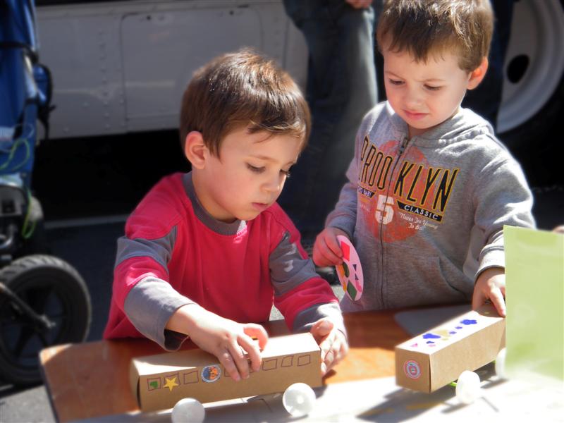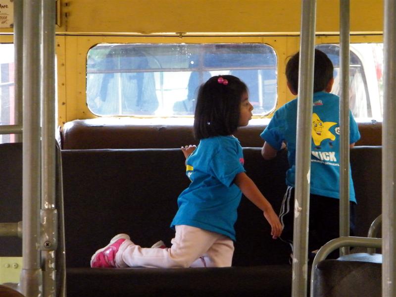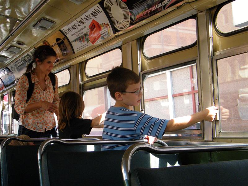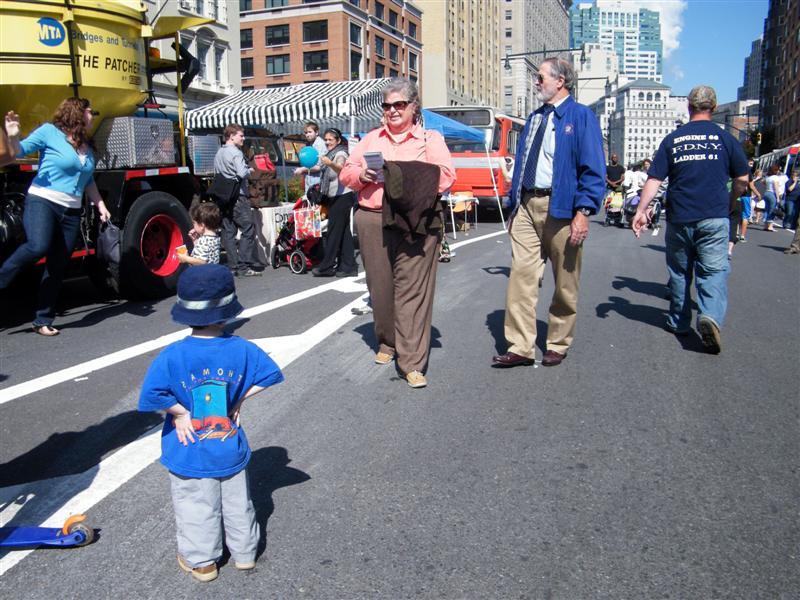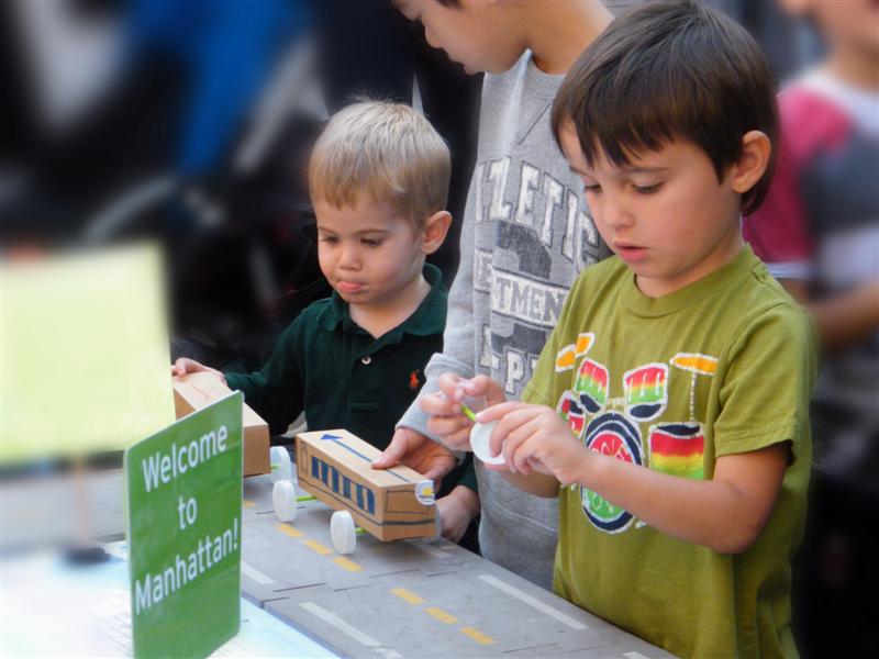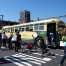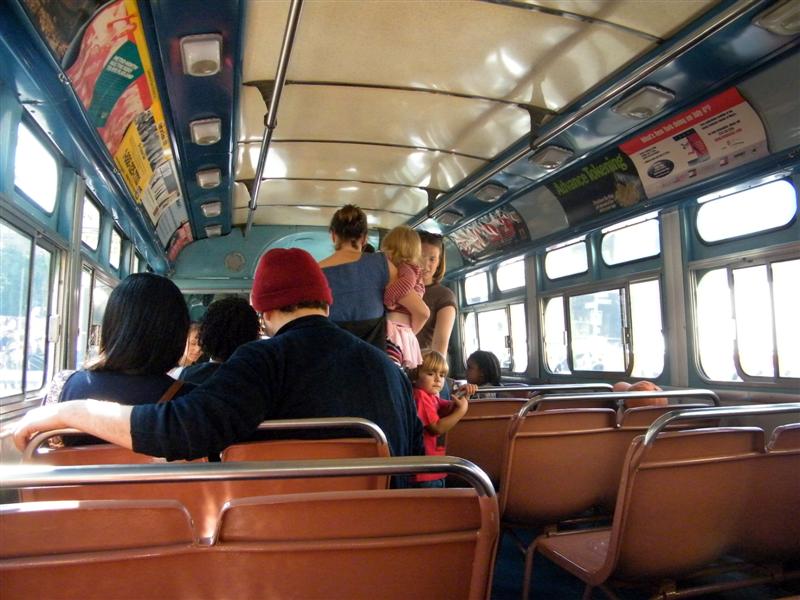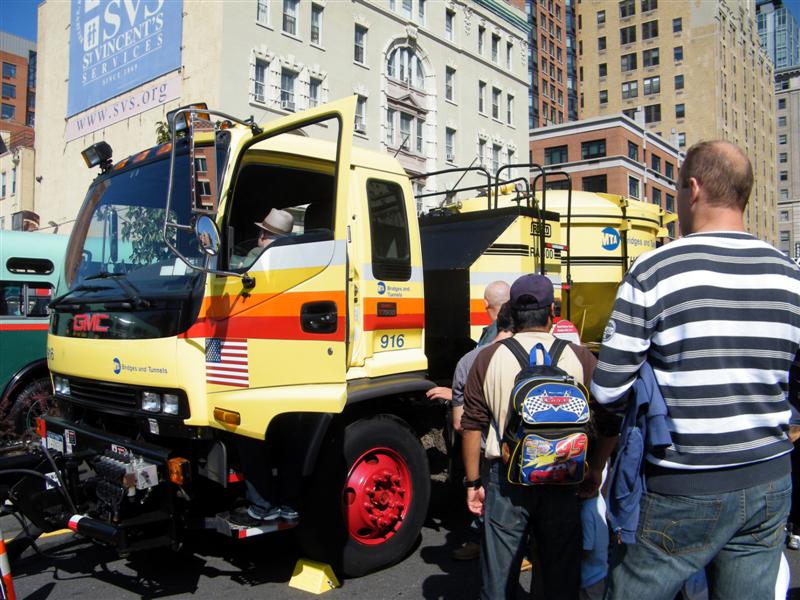 About a block from the museum the road was closed off to traffic, and the museum’s bus fleet was parked along both sides of the street. There were old buses, as well as more current versions. There was a tent for children to make and decorate their own little buses, and a table on which they could drive their creations. I swear I don’t think I’ve seen quite so many “mini-railfans” all in one place before… A child, who couldn’t have been more than five years old, pushed his bus/train while announcing, “This is a Brooklyn-bound Two Train! Stand clear of the closing doors!” I couldn’t help but laugh at that.