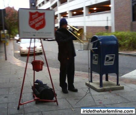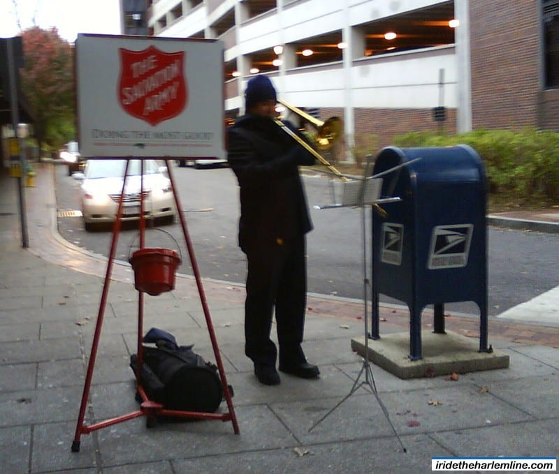 I talked with the man briefly, and he said that he would be playing outside train stations in the area three days a week. He’s collecting donations for the Salvation Army. The next time I see him I will ask what other stations he is playing at and such. Anyways, if you see him, say hello and give a little donation. I have to admit, the trombone playing is a lot nicer than the usual bell ringing. :P