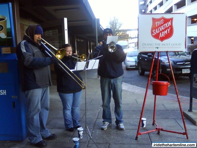 Though this morning wasn’t completely bust… the delightful Salvation Army trombone player was also back. And he brought his friends! They certainly sounded good, as I said before, much better than ringing that bell. I ended up giving them the dollar that I didn’t give to the beggar, certainly a far better investment. I did ask him what other stations he plays at, and he said Hartsdale and Scarsdale, so you riders over in those stations look for him and his cheerful Christmas tunes.