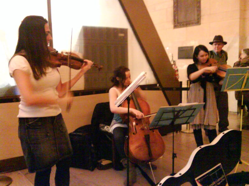 The one thing really cool about the fair is how diverse it is. African art, prints of New York and other New York themed crafts, Christmas ornaments, Dog-themed items (the “Fleas Navidad” Dog bandana cracked me up), gorgeous hand-crafted books, jewelry, clothing, hand-blown glass, and lots of other interesting items. Plus, there may be entertainment as well. When I was there a trio of young women were playing strings, and they were pretty damn good. I filmed a brief portion of their performance, and will be posting that later on this week. For now, enjoy the pictures of the Holiday Fair!