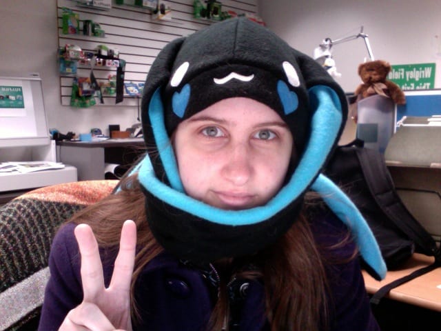 Today the “Cat Girl” morphed into “Rabbit Girl”. It has been so cold lately, that I figured I’d use the rabbit hat, since the long ears can be wrapped around and serve as a scarf. You really know it is cold though, when you get to the station and there isn’t a single soul standing on the platform. They are all hiding in the heated vestibules until the train arrives.
