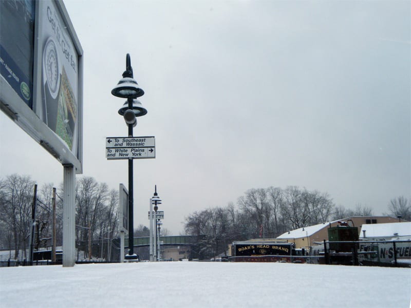 Due to the snow this morning a lot of people ended up leaving work early. I ended up getting a ride to Hawthorne from a coworker. I don’t normally visit that station, just in the few exceptions that snow has caused shuttle bus issues. Unlike what I am used to in Goldens Bridge, a good portion of the platform in Hawthorne is uncovered. So by the time I got there, there was at least an inch of snow covering over everything. Of course I took the opportunity to take some photos as I was waiting for my train.