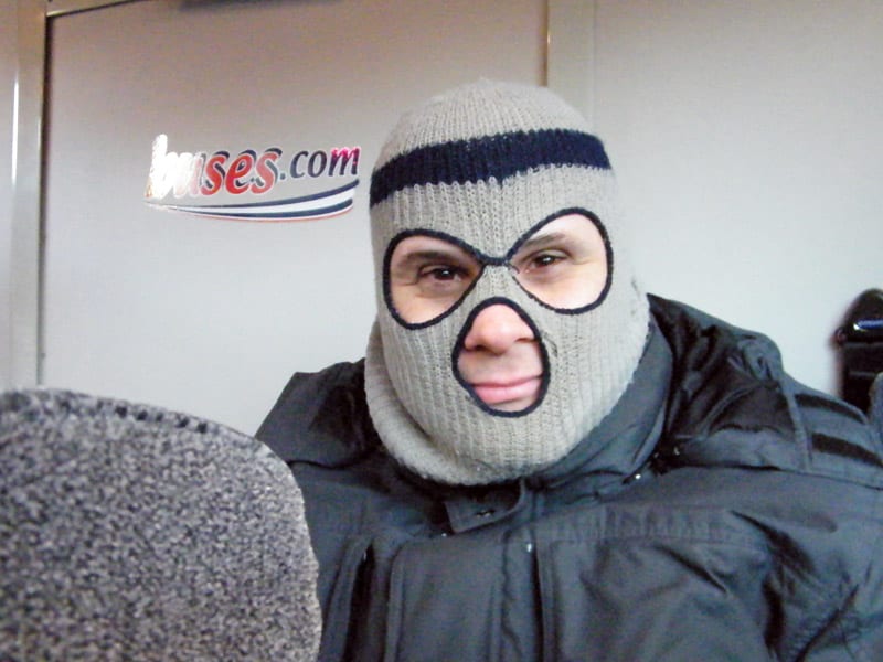 This morning marked the arrival of our new shuttle bus. Within minutes of waiting, however, it seemed as though we were about to get hijacked by a masked man. Upon further scrutiny it seemed as though we were mistaken: it was just another passenger waiting out in the bitter cold for a bus that was going to be late. Typical.