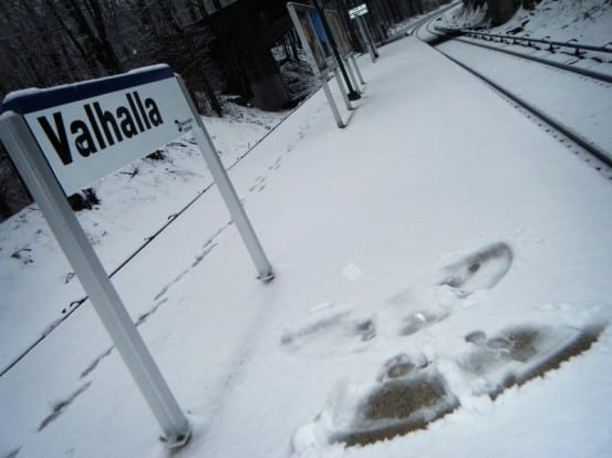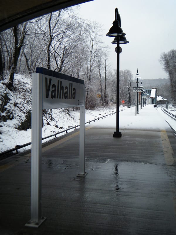 Valhalla was slammed by snow this morning, enough for my work to close at 1pm. I headed over to Valhalla station to take the 1:27 train back to Goldens Bridge, and while I waited for the train took a bunch of pictures. And did something I haven’t done in a very long time. I made a snow angel. On the platform.