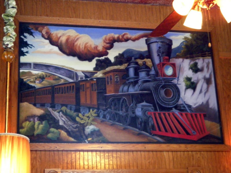 Throughout the place were framed prints and photographs of train-related memorabilia, as well as original photos of the Valhalla station, with the original platform. There was a caboose room in which you could eat, which we took photographs of. Of course all the people eating in the room had pause their conversations to turn and look. This is why I often feel shy about taking photos in public. I quite liked the large painting of the steam train that was not far from our table, but my friend kept saying to me that the plume of steam looked like an umbilical cord. Delightful imagery for lunchtime.