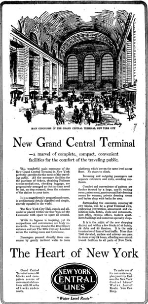 If you’re interested in seeing more old drawings and advertisements of Grand Central’s opening, click here to take a look through the Historical Archives.