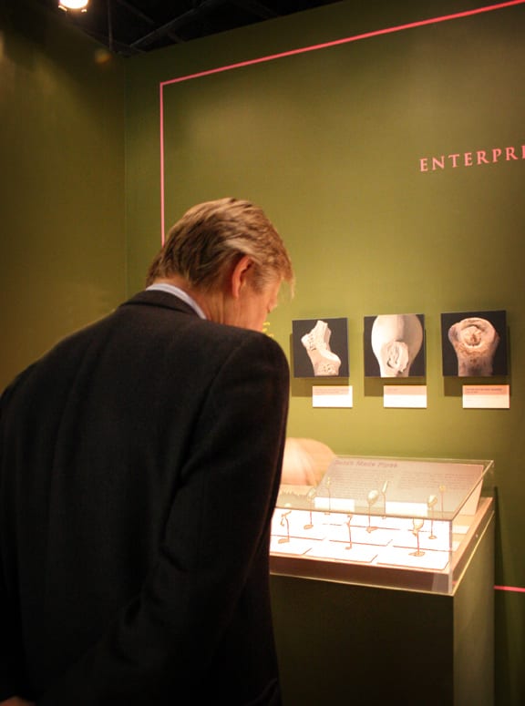 In fact this is the area of the city where Cornelius Vanderbilt got his start, before he ever thought about getting into railroads. Vanderbilt, of Dutch heritage, ran various ships in New York Harbor, at times even ferrying materials for the government to build defenses for the War of 1812 in the vicinity of the Battery. (After reading a biography about Vanderbilt, I could probably say way too much about the man, but I’ll save that for Friday). Many of the artifacts unearthed were Dutch in origin… in fact the Consul General of the Kingdom of the Netherlands, Mr. Gajus Scheltema, was in attendance.