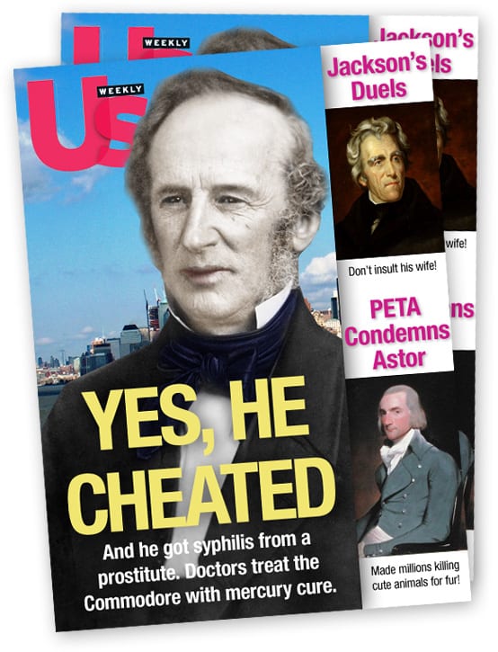Cornelius Vanderbilt, who was nicknamed the Commodore, certainly was an interesting character. In fact, if tabloids as they are now existed when Vanderbilt was alive, they would have loved him. Tiger Woods is absolutely nothing in comparison to Vanderbilt. Cornelius certainly enjoyed his prostitutes. It would be tabloid front page news!