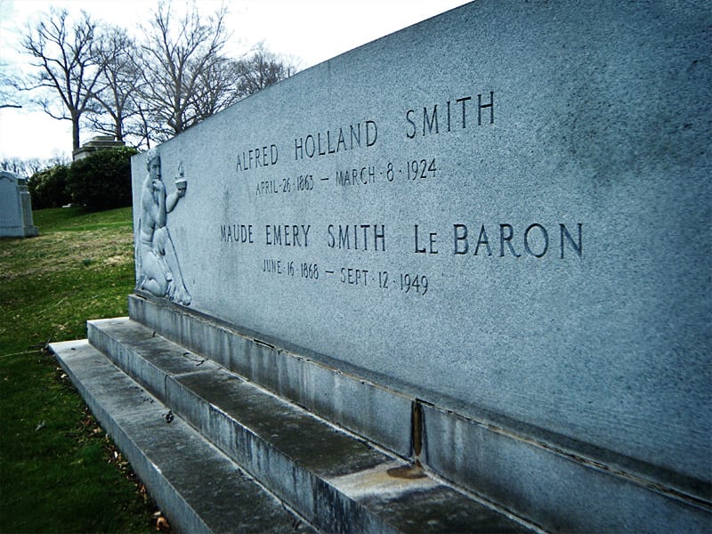The Cemetery is located down the street from where I work, and I convinced my friend to accompany me on a lunch break adventure. After driving up and down the winding streets of the cemetery, we finally found the former train station house, the current cemetery administration building. We headed inside to get warm, and to find a map. The lady inside was cheerful to help us on our quest to find some famous dead people, but inside I’m certain she thought we were nuts. She handed my friend and I a stapled packet labeled Kensico Cemetery Historical and Scenic Tour.