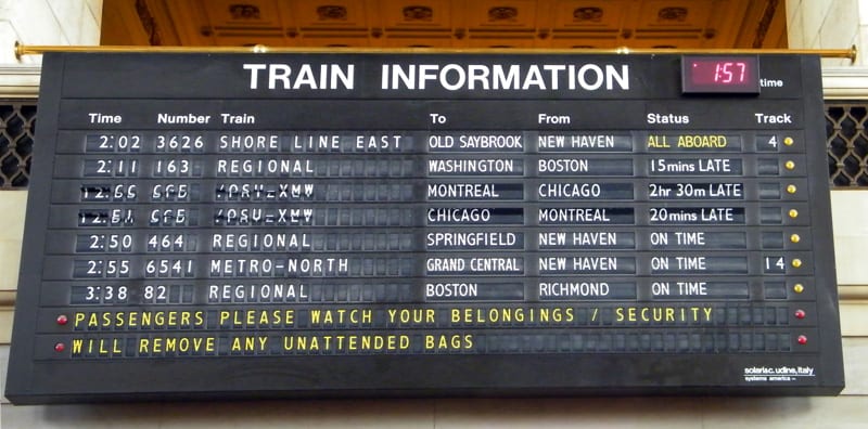 A few months ago, news hit the newspapers and internet that the Connecticut Department of Transportation was going to be removing the Solari split-flap departure board at Union Station in New Haven. There was a bit of a fight about it though: people didn’t want to see the sign go. People tried writing letters… even I wrote a letter to the CDOT, which of course, was never answered. A Facebook group, called Save Solari, even rounded up 600 fans that wanted the sign to stay. Unfortunately, it seems that all those attempts to convince the CDOT failed. Construction on New Haven’s Union Station begins today. And Metro-North has confirmed on Twitter that it will include the replacement of the split-flap display with an LED sign. The construction also includes upgrades to the sprinkler and fire protection systems, heating and a/c improvements, rehabilitation of the elevators, reconstruction of the pedestrian tunnel, and upgrades to the PA system. The construction will happen over the next twelve months, at which point of this the Solari will be removed has not been mentioned. But apparently, it’s days are numbered.