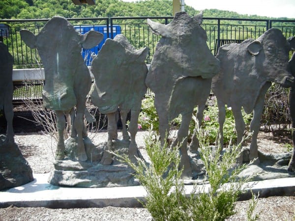 Wassaic is unique in the respect that it has a very nice Arts for Transit piece called Arrival, by sculptor Anne Huibregtse. Huibregtse’s pieces contain a similar subject matter: the bovine. And considering the history of Wassaic, the cows fit in perfectly. Gail Borden, the inventor of condensed milk, had a factory in Wassaic, and a good amount of freight that ran on the Harlem Line was milk. The bronze cows stand over the abundant green grass that is all too absent in stations more south on the line. Just the fact that they were made of bronze surprised me, in real life they looked quite natural, as if they were carved from large slabs of rock. It wasn’t until I searched for more information about the piece online that I found they were made of bronze.