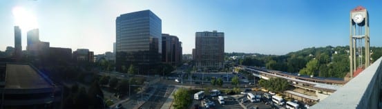 There aren’t too many places in the White Plains train station I’ve never been. But I figured, why the hell not, I’ll go to the top of the parking garage. Up at the 8th level you can look down at the city of White Plains, listen to the rumble of the diesel engines as they head to Wassaic, and hear the whine of the M7 as it brakes and stops. And besides all the bits of trash (used condoms, eew) it is actually kinda nice up there. And quite peaceful, since I never seem to see anybody up there. Anyways, here are some photos of the view, morning and evening.