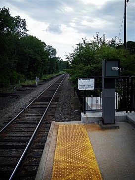 It certainly has been a lot of years since then… I’m hopefully less obnoxious on the train, and I know that beyond Southeast – what Brewster North is now called – there still is more to the Harlem Line. The first stop north of Southeast – beyond the electrified tracks, located 60 miles north of Grand Central – is the last stop in Putnam County: Patterson. There is one track here, as well as a platform that will accommodate four train cars. It is a small station, but it does have the amenities we have come to know: automated ticket machines, and a shelter for waiting in the cold (great for days like yesterday).