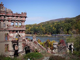 Today, the island is a part of the Hudson Highlands State Park. Unfortunately, it is not quite the jewel it once was. Besides the two collapses in the past year, the castle was ravaged by fire in 1969. Many portions of the castle became covered in vines over time, which amusingly might be helping to hold the structure together. The Bannerman Castle Trust is attempting to preserve and restore the castle, but are desperately in need of funding. As we wait the castle will continue to crumble, and perhaps be lost forever: with little money to spend they’ve chosen to attempt to restore the residence first, since it is in better condition than the castle itself.