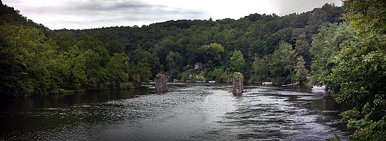 I am not 100% sure that the railroad bridge shown in the last historical picture corresponds with the remaining trestles that are there today (two bottom photos). The geography doesn’t quite match… though it is possible that the photo was taken before the Stevenson Dam was erected, which presumably altered that area, creating Lake Zoar. If anybody knows more about this, or actually has a photo that is definitely of that railroad bridge, leave me a comment!