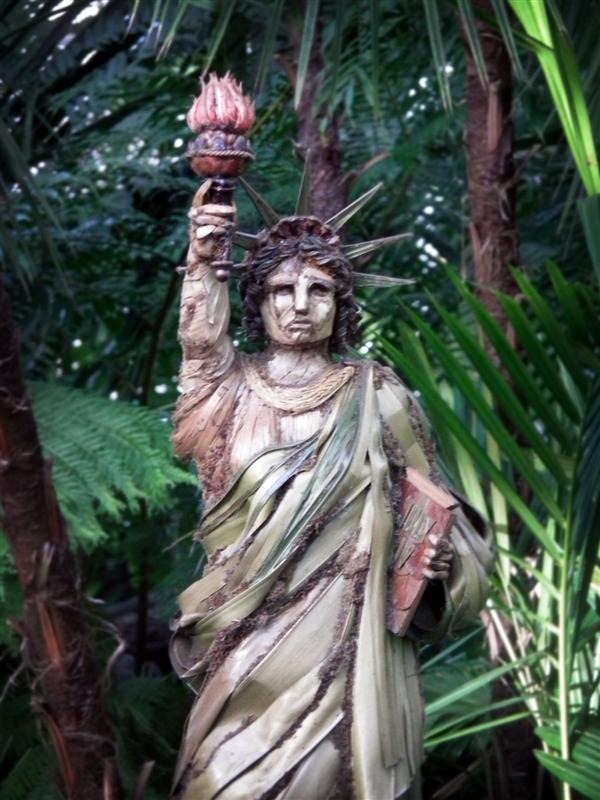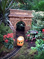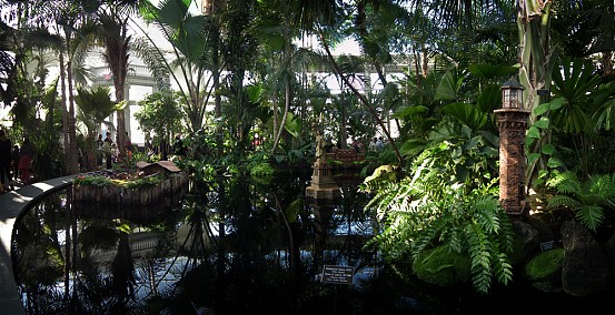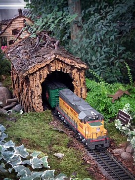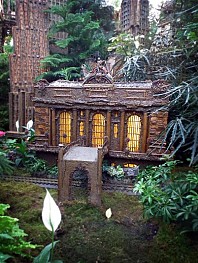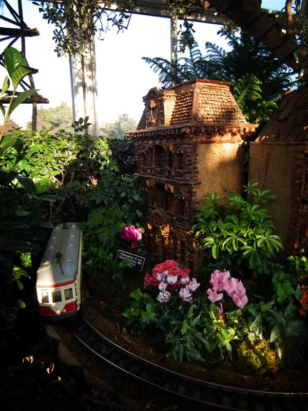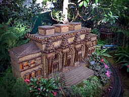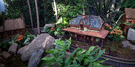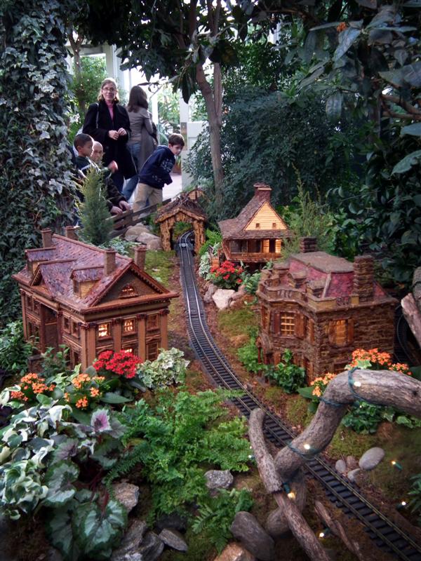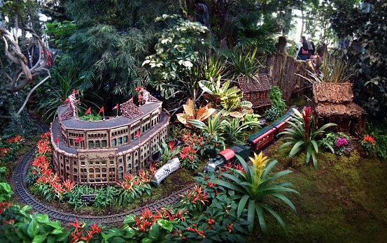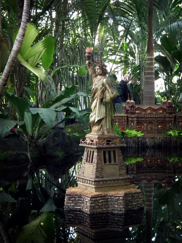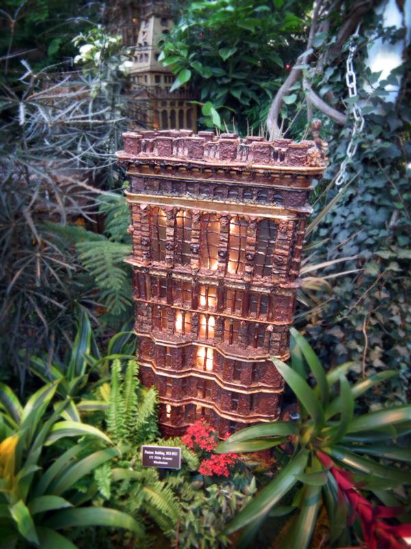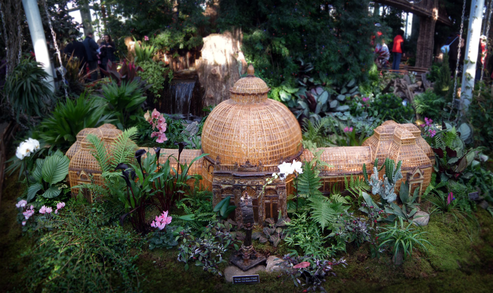 Several weeks ago I got a chance to take my first visit to the New York Botanical Garden to see the Holiday Train Show. For all the folks out there that have any experience with model railroading, you are familiar with the fact that it is a rather expensive hobby. I can only imagine how much the setup at the Botanical Garden took, not only in dollars, but in time as well. The amazing array of recognizable current and historical landmarks is astounding, and created of plant matter. I was quite fascinated with the beautiful textures: the layered leaves and twigs that comprised the roofs, covered bridges made of tree barks, building details made of seeds and acorns, and the thin imitation of glass illuminated from the inside. Current landmarks, such as Grand Central Terminal, stand side by side with recreations of the city’s long-gone masterpieces: from the house of William Kissam Vanderbilt that once stood on Fifth Avenue, to the stunning Pennsylvania Station.