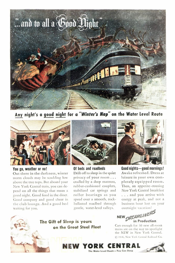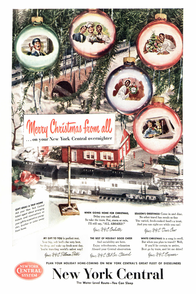 Hopefully all of my readers that celebrate Christmas are enjoying your Christmas Eve… Did I ever mention that I love looking at vintage ads?`Even better are vintage railroad ads. Here is a little collection of holiday and winter ads from the New York Central. Have a great holiday, everybody!