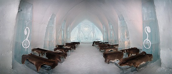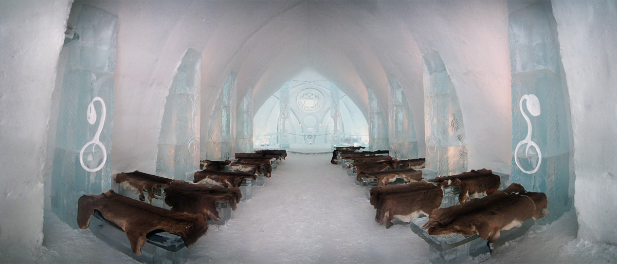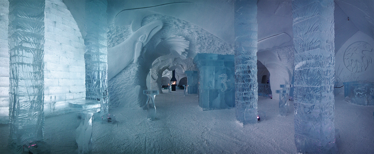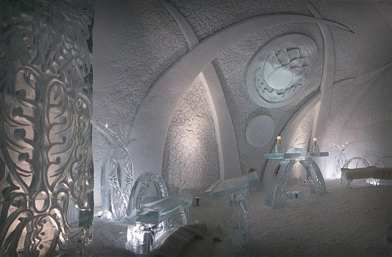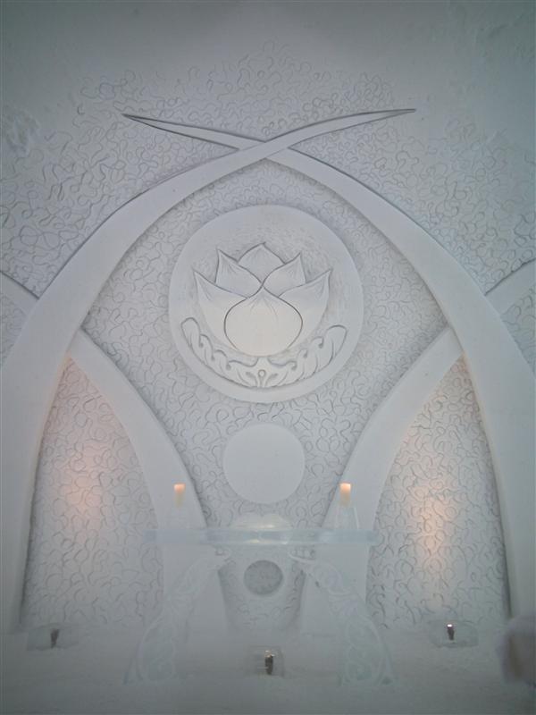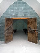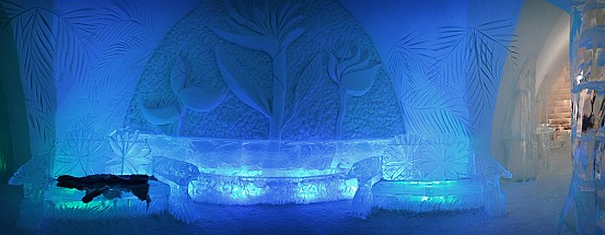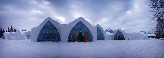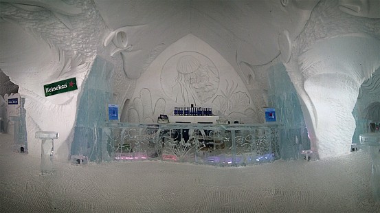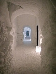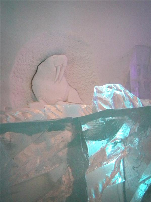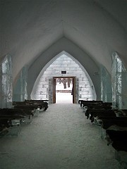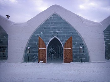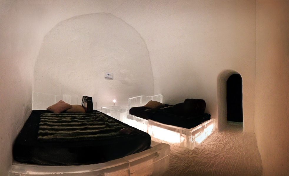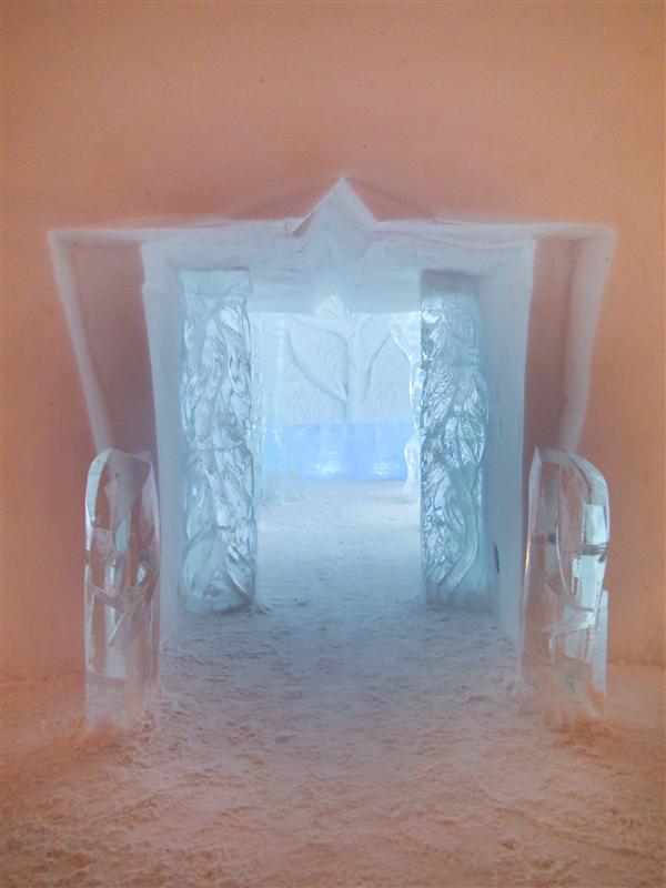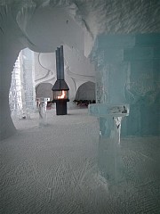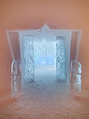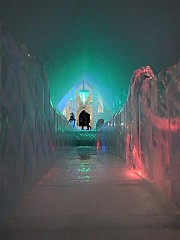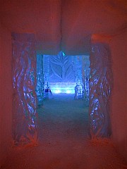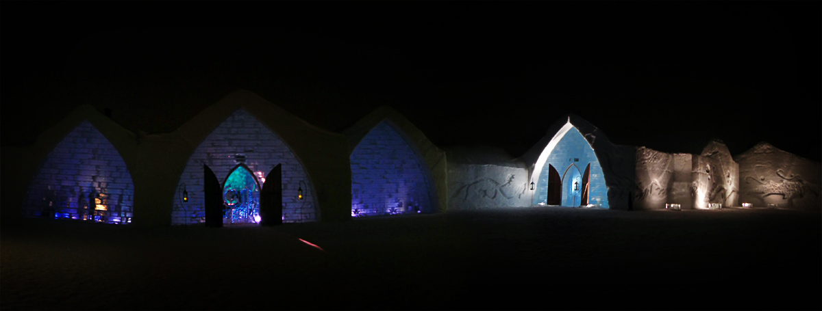 The Hôtel de Glace is made entirely of snow and ice, has 32 guest rooms, as well as an ice bar, and ice chapel, and an entrance room with an ice slide. In the evening everything is illuminated with colored lights, and it is absolutely gorgeous. Upon my arrival the ice bar was filled with folks drinking out of cubed glasses made completely of ice. I was rather cold much of the time, but it was quite the intriguing, and beautiful adventure.
