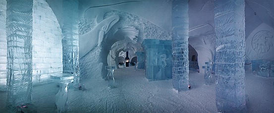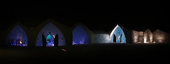 I’m pretty sick of this winter weather and snow, and I can imagine most people out there are feeling the same… especially if you’re a New Haven Line rider. Knowing that, even I have no clue why exactly I thought it would be intriguing to head up to Canada for a night in an ice hotel, and to partake in the festivities of Quebec’s Winter Carnival. I can assure you that my strange desire to sleep outside in the winter, in essentially an igloo, has been satisfied. For the rest of my life I will probably cling to my most favored possession – my electric blanket. But survive the winter’s cold I did, though I will admit I did have the assistance of some heat packs and hand warmers. Despite the cold I participated in quite an array of wintertime activities, from ice and snow slides, to browsing a few galleries of snow sculptures, and even a little dogsledding. Though not train related, I thought it would be cool to post up some pictures from the anchor attraction of my trip – the ice hotel. Typical of me, however, I did visit Quebec’s train station, called the Gare du Palais, and I’ll also be posting photos of it soon.