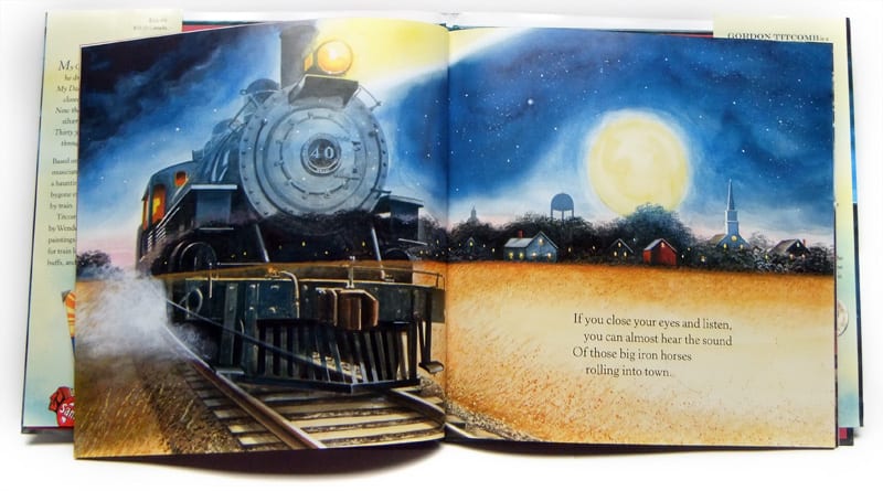 If you’re interested in the book, it was written by Gordon Titcomb, and as previously mentioned, illustrated by Wendell Minor. And if your local Borders is closing like mine is, you might even get a deal on buying it! Oh, and you can check out this video that features some of the book’s illustrations, as well as Titcomb’s song The Last Train.