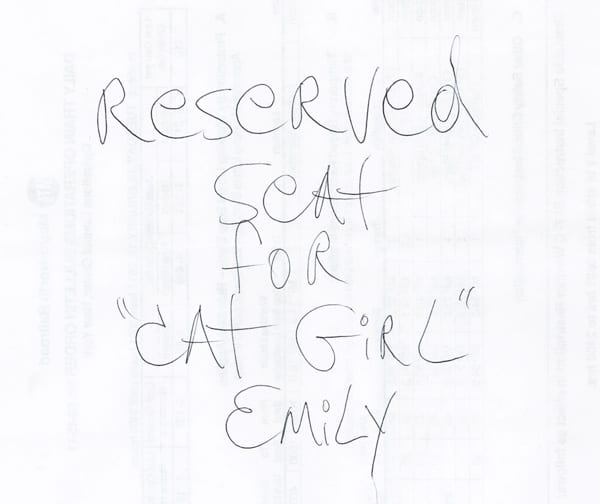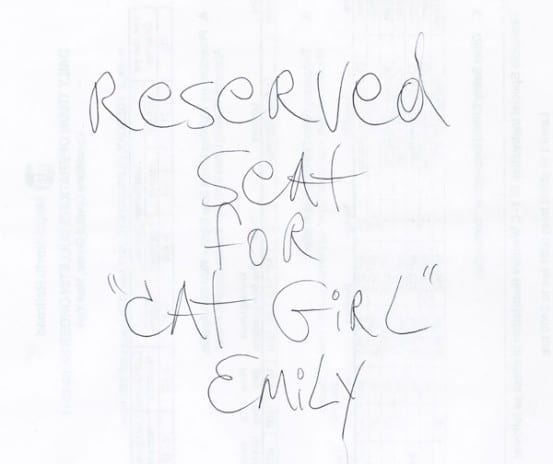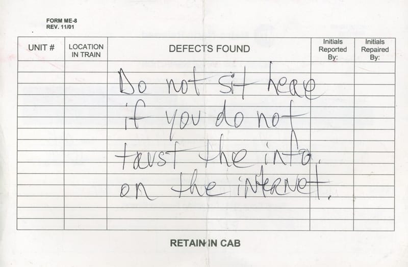 From my experience riding the trains, it seems that Metro-North has quite the diverse assortment of employees. The people they employ can claim heritage from many different countries and backgrounds. There are some old railroaders that can tell stories of working out of Selkirk many years ago, and there are many fresher faces. Folks that have served their country in Afghanistan. A former member of the Secret Service (whom I secretly think is badass). Today, however, I must mention a rather unique individual (and my surrogate big brother) that many years ago had wanted a finance-related job with the railroad, but after much time was offered a position as an assistant conductor. In reality, he totally missed his calling as an artist. Some mornings I would find notes he left on my seat, as I always sit in the same seat on my morning train. I would sit down and burst out laughing when I saw the note, I’m pretty sure that everyone else on that train thinks I’m nuts.