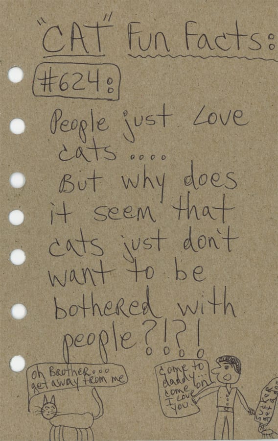 Unfortunately there will be no more Cat Facts for an indeterminate amount of time, as the artist has changed jobs and is no longer on my train.