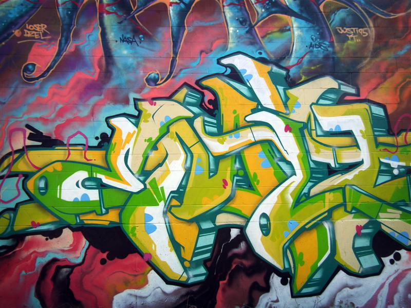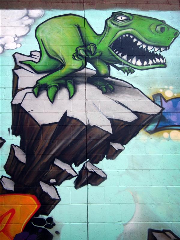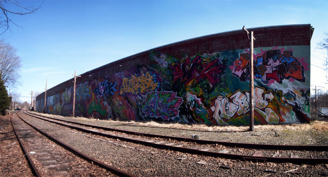 The graffiti is located just off of Main Street in Danbury, not far from the Metro-North station, and the Danbury Railway Museum (it is not alongside actual Metro-North Danbury Line tracks). The most noticeable portion is the portion closest to the road, depicting Danbury Police Officer Robert DiNardo, who died of cancer in 2009. However, the wall is extremely long and continues far beyond what is visible from the road. If you ever have the time to check it out, I highly recommend it. The entire wall was a collaborative effort by the DF Crew, who are active in the New York City area. The portrait of DiNardo was done by Jick, who grew up in Danbury and now lives in the Bronx.