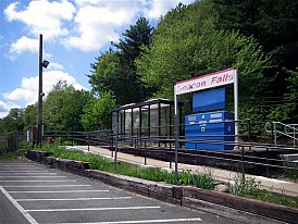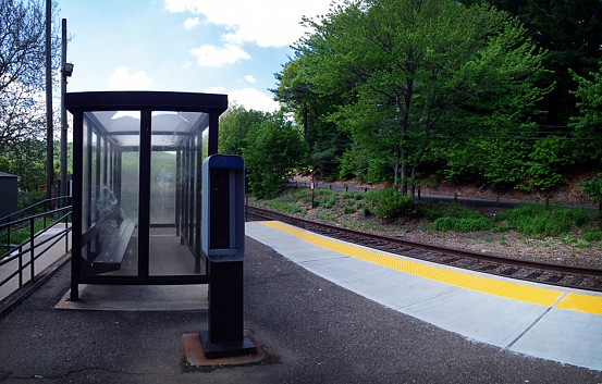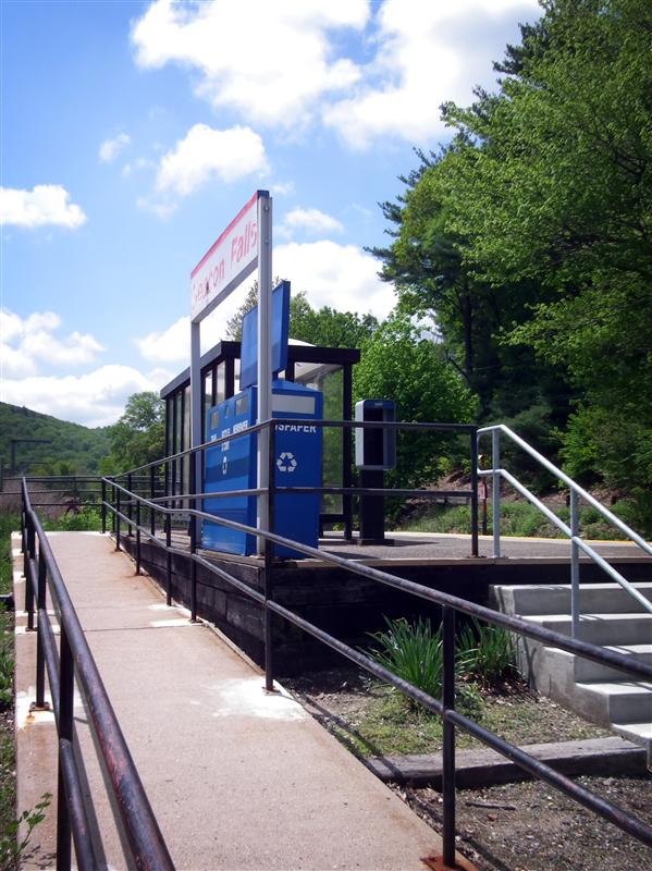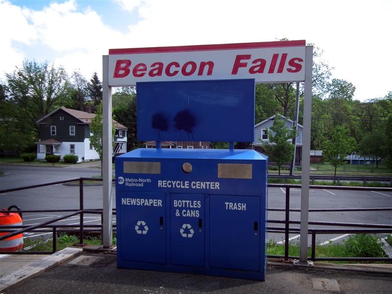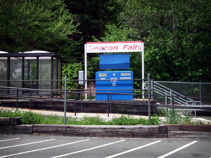 Located 78.5 miles from Grand Central, Beacon Falls is one of those aforementioned small Waterbury Branch stations. Unlike most other Metro-North stations, if you ride from Beacon Falls and buy your ticket on-board, you are not charged the additional fee. Mostly because a few of the Waterbury Branch stations, including Beacon Falls, don’t have Ticket Vending Machines. Besides a bus-style shelter and the typical train trash and recycling bin, the station really doesn’t have much. The platform still holds the remnants of a public phone, but the actual phone is long gone. Below are the photos from my brief trip to Beacon Falls… hopefully we’ll visit somewhere else, perhaps a little bit more interesting, next week.