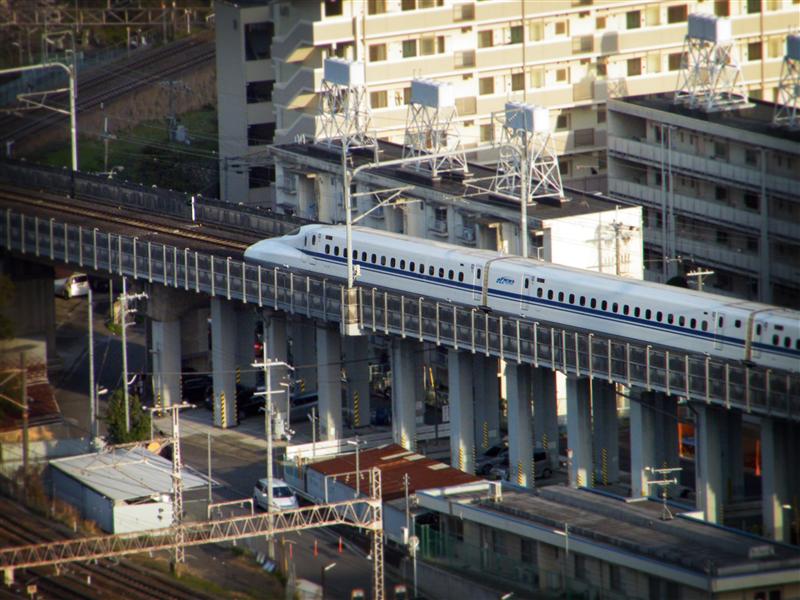 Japan’s shinkansen is beautiful, at least in my opinion. The front is is long, sleek, and aerodynamic… at least on the N700 Series, which is the one I took. The Nozomi (“super high speed”) service took 2 hours and 20 minutes to go from Tokyo to Kyoto on the Tokaido Line, a distance of nearly 300 miles. The train’s top speed is 186 miles per hour. Part of the beauty of the high speed system in Japan is that the shinkansen has dedicated tracks, and no grade crossings. The ride is rather scenic, but because the train never intersects with roads there occasionally periods where the train will run in tunnels completely underground. I was amused, because it felt like every time I started recording the view on my video camera, we went through tunnels.