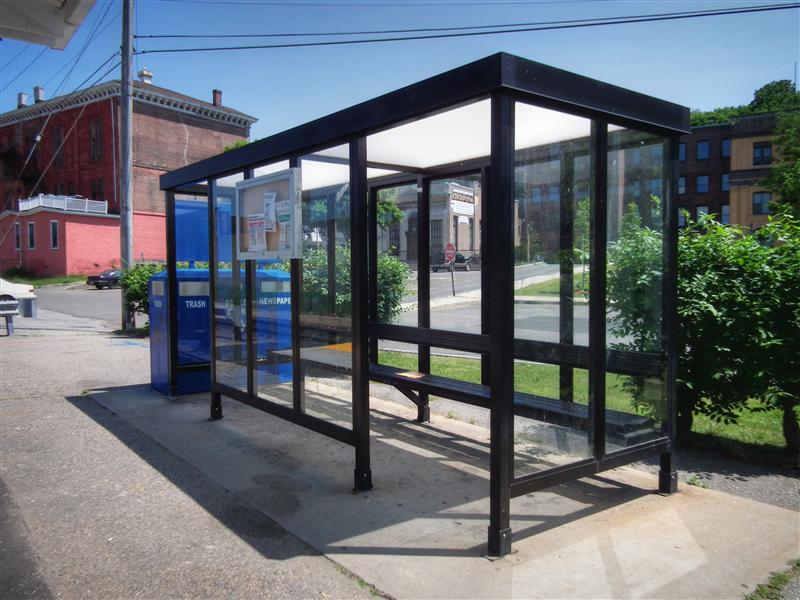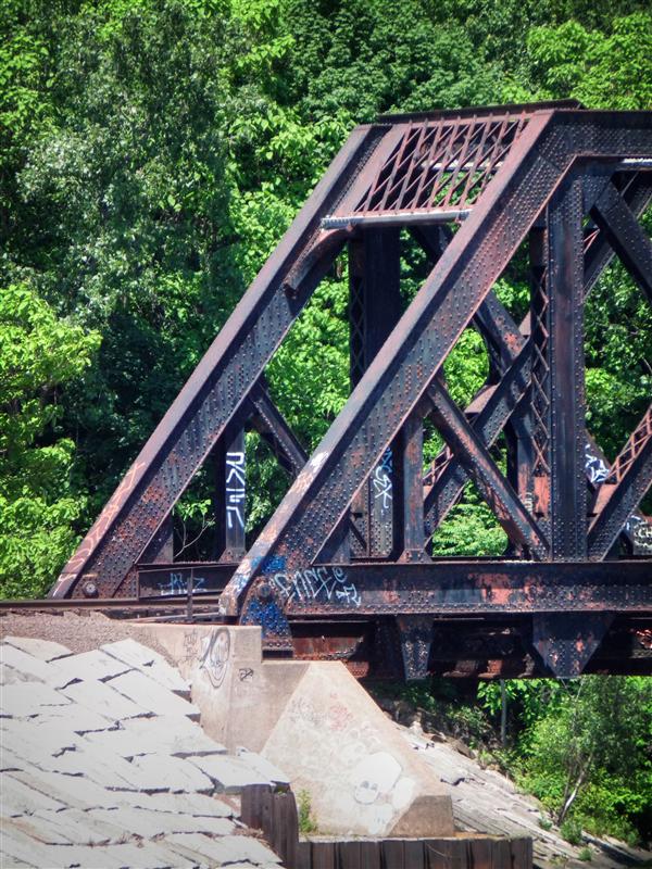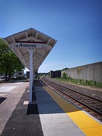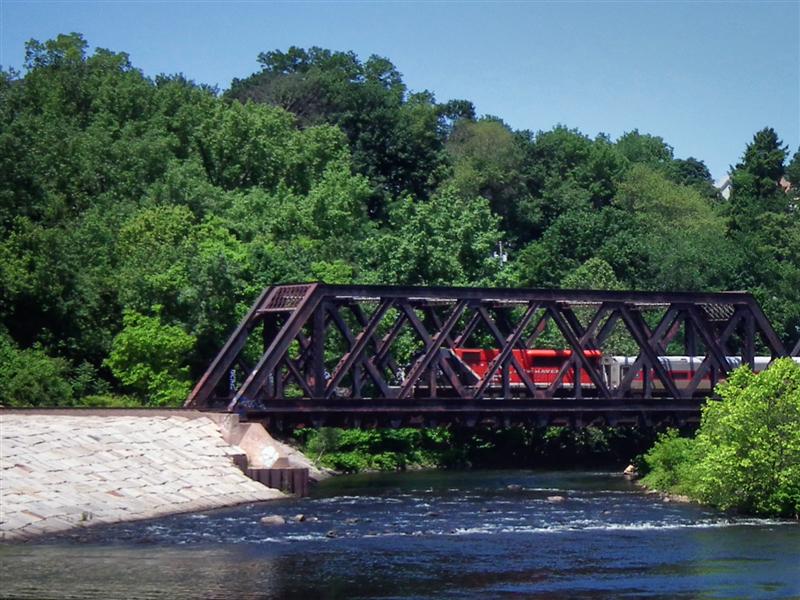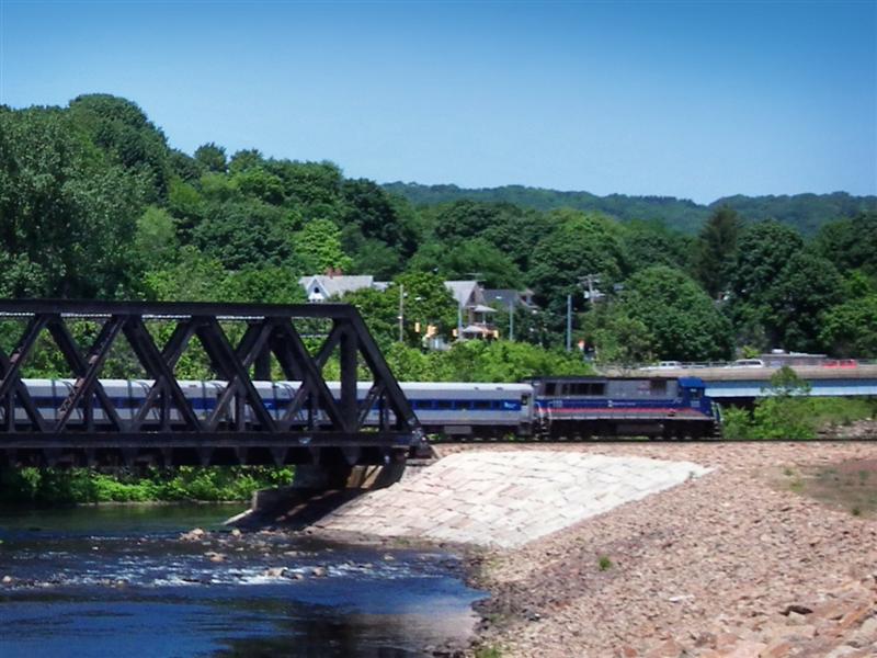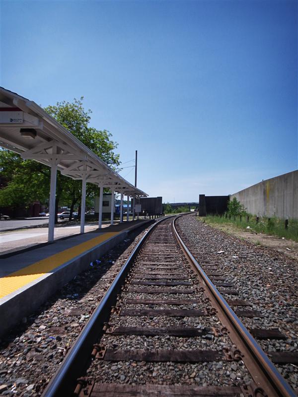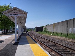 Needless to say, the Ansonia station is very small. I almost don’t even want to call it a station, it is a railroad stop. There is a track, a small low-level platform, a canopy and bus-stop style waiting area, and that is about it. Well, actually there were crows that were probably feasting on something a train had run over, and stacks of Watchtower magazines left by the delightful Jehovah’s Witnesses (people with propaganda love train stations!). On the 71 mile ride to Grand Central, you’ll have plenty of time to read that aforementioned propaganda – especially since there are no direct to Grand Central trains on the Waterbury Branch. Slightly more interesting than the station was the railroad bridge just south of the station, where the tracks cross the Naugatuck River. I waited for the late north-bound train, and didn’t even get that spectacular of a photo.