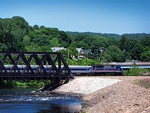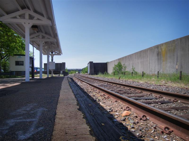 In the early 1950’s, there were three or four sidings, a large brick passenger station and a larger frame freight station at this location. My first trips from here to Bridgeport were behind steam (wish I knew just what the locos were). Later trips were behind Alco RS models and, finally, on Budd cars. From Bridgeport, I rode to New York behind old flat bottomed electrics. In August of 1955, this area was devastated by flooding with the passenger station being almost completely submerged. If my memory is correct, the trestle south of the station was moved off the end piers by the force of the water. The rails of the main line were bent almost like pretzels. In October of the same year, another severe flood hit this area. After those disasters, the line went downhill rapidly and the stations were never rehabilitated. The platform was built several years later and I am not sure that the current platform is the one dating to that period.