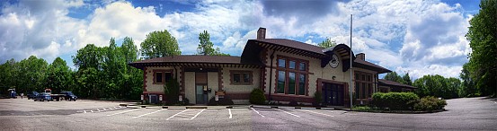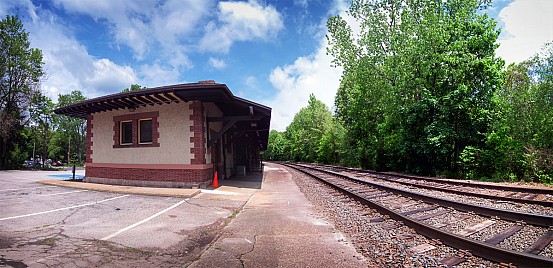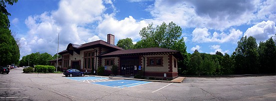 Metro-North’s station in Naugatuck, located 82.5 miles from Grand Central, is the same small variety seen in the other stations we’ve been to on the Waterbury Branch. There is a small bus-style shelter, and there are no ticket machines. Platforms are low-level and accommodate one train car’s door for entering and exiting. Located alongside the station is the original Naugatuck station, which is now occupied by the Naugatuck Historical Society. The station was built in a Spanish Colonial Revival style and designed by architect Henry Bacon. Work on the station began in 1908, and it was completed in 1910. It remains in good condition, and is quite attractive. There is a museum inside, but I never got a chance to check it out while I was there.
