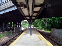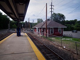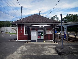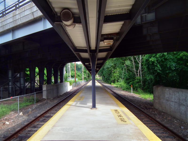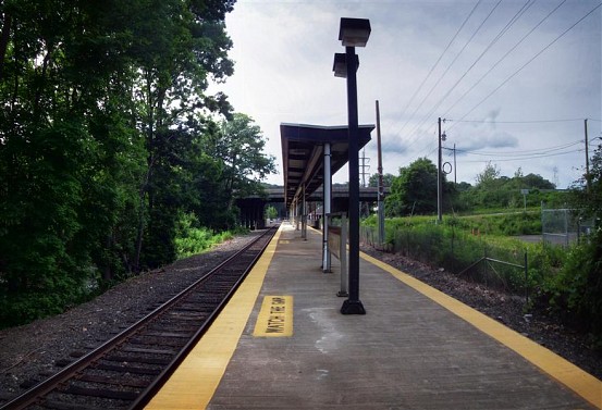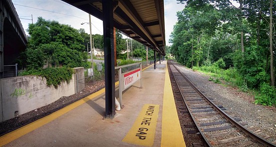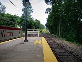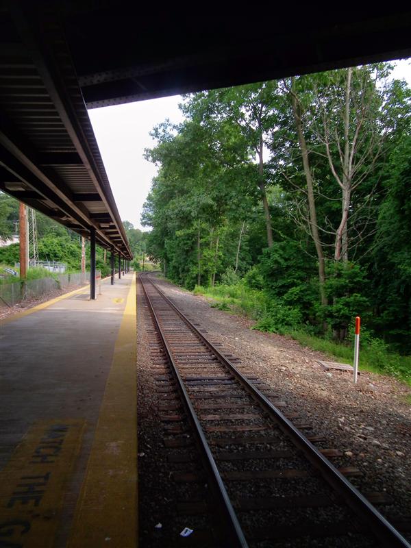 Wilton is our final stop to check out on the Danbury Branch. The station is located not far from Route 7, and is 48.5 miles from Grand Central Terminal. Surrounded by trees and small stream, the area around the station is relatively peaceful. Like many of the other Danbury Branch stations, there is little that is particularly noteworthy here, besides the small station building which was closed at the time of my visit. In fact, on the day of my visit a busing schedule was in effect, making the platform exceptionally quiet. I could have made a sound recording for you, and titled it “The Sounds of Wilton.” On that day it would only contain the sound of the stream, unpunctuated by the normal wail of a train horn and the rumble of a diesel engine.