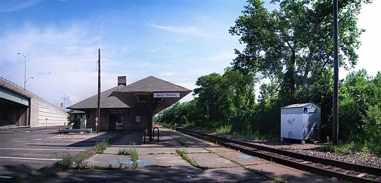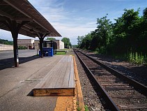 Despite being close to the highway, Derby/Shelton feels a little bit remote – at least in terms of stations. Stratford, the next station to the south is a little over 10 miles away. Grand Central is almost 70 miles away – the Waterbury Branch has the honor of having some of the most distant stations from the terminal. There is just a single track, and a long wooden box serves as a low-level platform.
