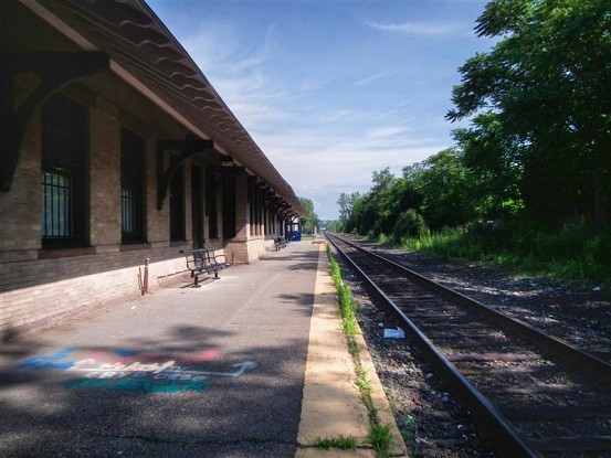 What is it that makes Derby/Shelton a little bit ghetto? Maybe the it is the bus-style shelter, or the wooden low-level platform. No, you know what it is? It is the fact that the train departure schedule is taped to a trash bin. Every other station has some sort of message board or wall on which to place information. But at Derby/Shelton you can save time by figuring out what train you’ll be leaving on, all while throwing out your used coffee cup!