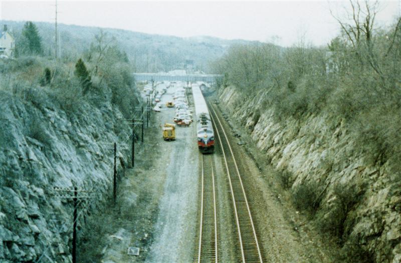 The “snowy scene” photo shows a West-bound M-N train of MU coaches at the NY-CT State Line , crossing over the Byram River into Port Chester.