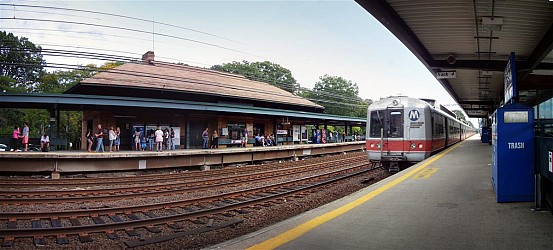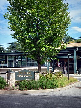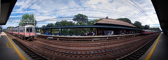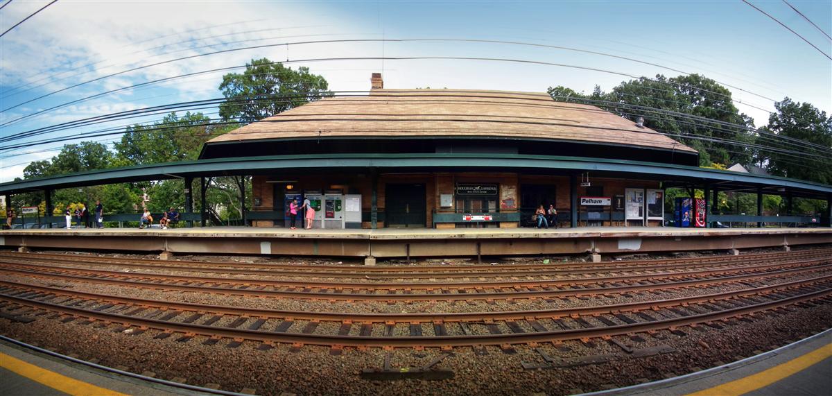 Back on topic, today’s panoramic stop on the New Haven Line is Pelham – the second New York state station on the line to be featured here. Pelham is located fifteen miles from Grand Central, and it takes around a half hour to arrive in the city by train. The station is in fact quite charming – surrounded by trees and other greenery. Various shops, including a deli and a few restaurants are all within walking distance. The old station building, built in 1893, still remains, though it is mostly occupied by a real estate office. I was able to see the old ticket windows inside (through the window – I hate how most stations are closed on the weekends!), though Pelham no longer has a ticket agent and all tickets are sold through the TVMs. That’s about all I have for you this morning – enjoy the photographic tour of Pelham:
