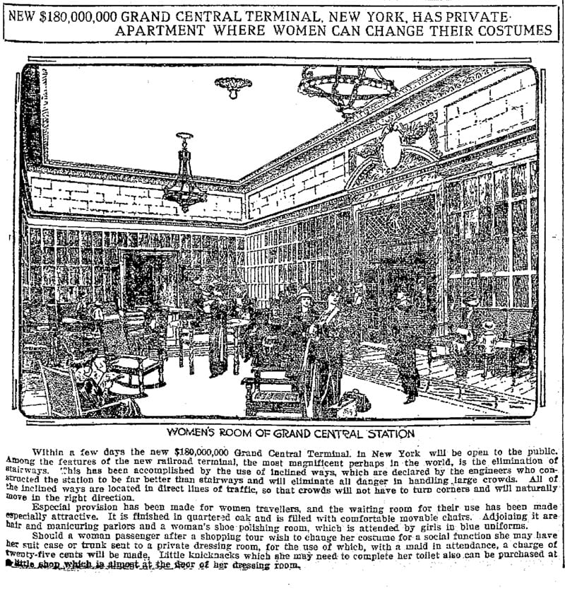 women’s room in Grand Central, which catered to the high-end ladies of the day. After all, you wouldn’t want your dress to get dirty on a long steam train journey, would you?