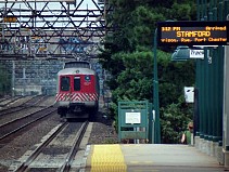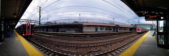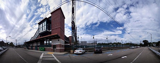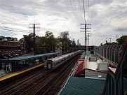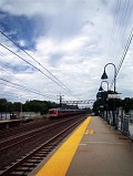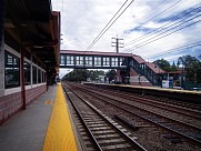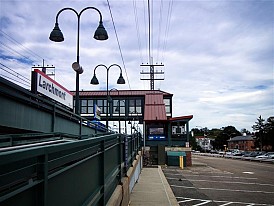 Today’s stop on the tour of the New Haven Line is Larchmont, one of the handful of stations on the line located in New York state. Larchmont, situated about 18 miles from Grand Central and in between New Rochelle and Mamaroneck, is a rather unique set-up. The station and platform run parallel to Interstate 95 – and the parking garage for the station is constructed over the highway. The older station was demolished around the 1950’s when the highway was being constructed, and was replaced with what we have now.