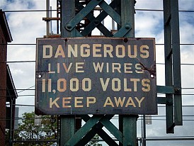That 11,000 Volt overhead catenary pole warnin sign you’ve got here;
