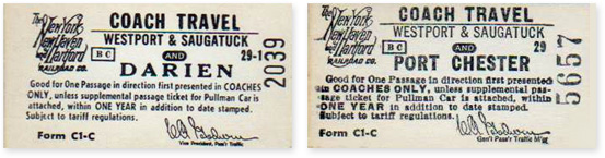 Old train tickets listing the station name as Westport & Saugatuck
