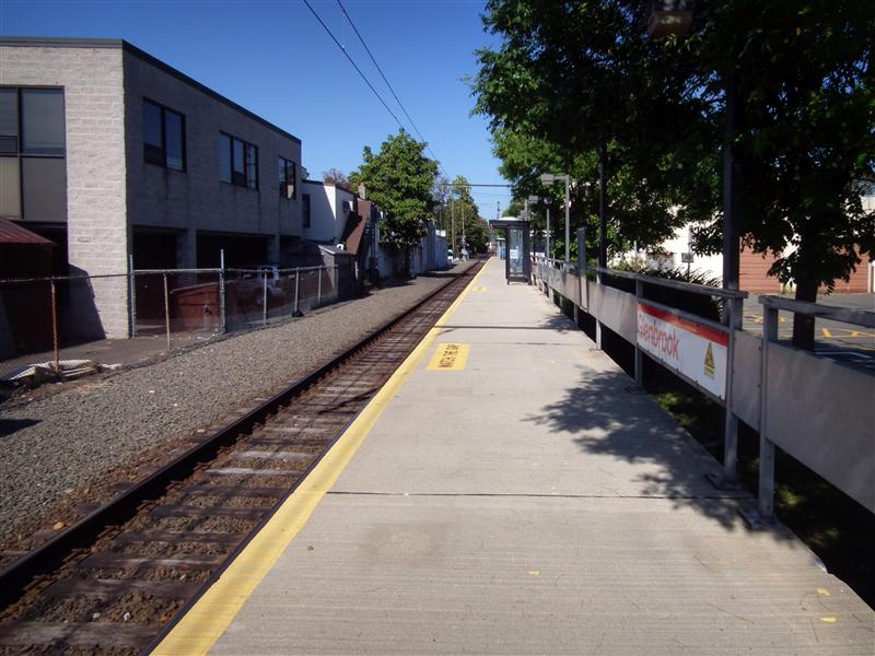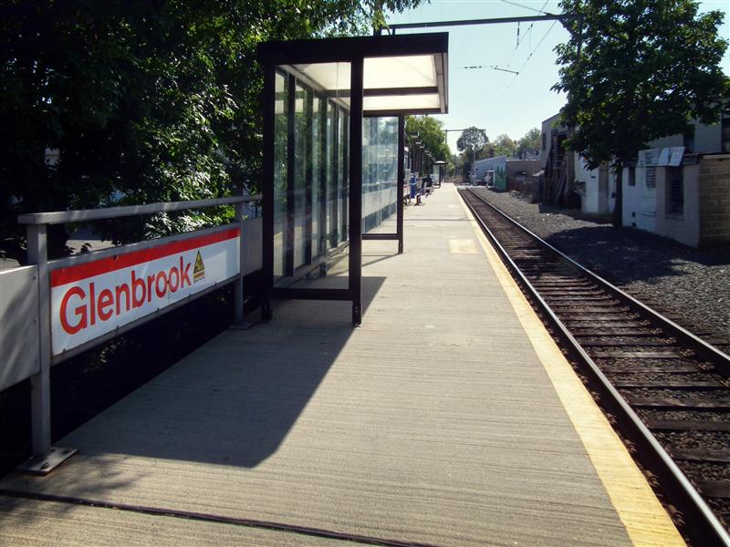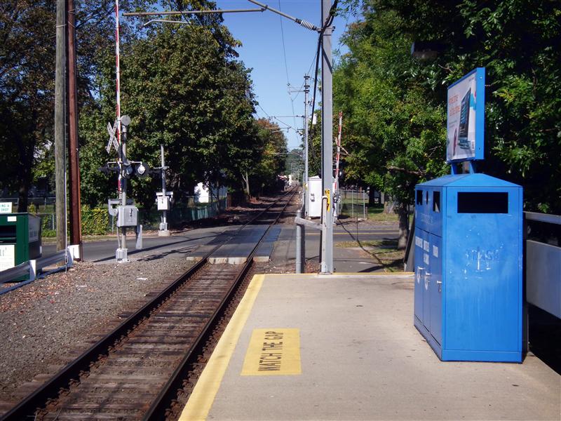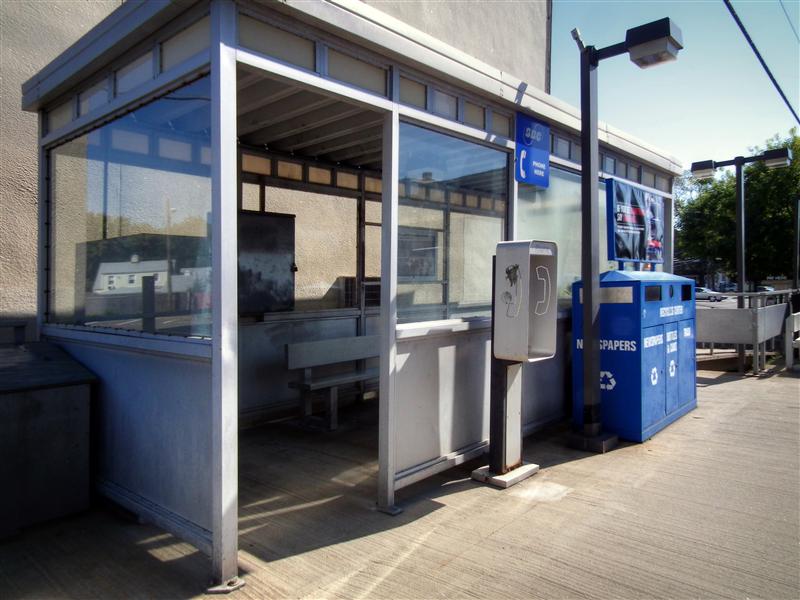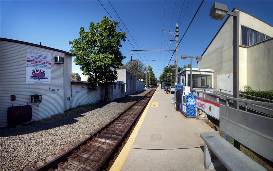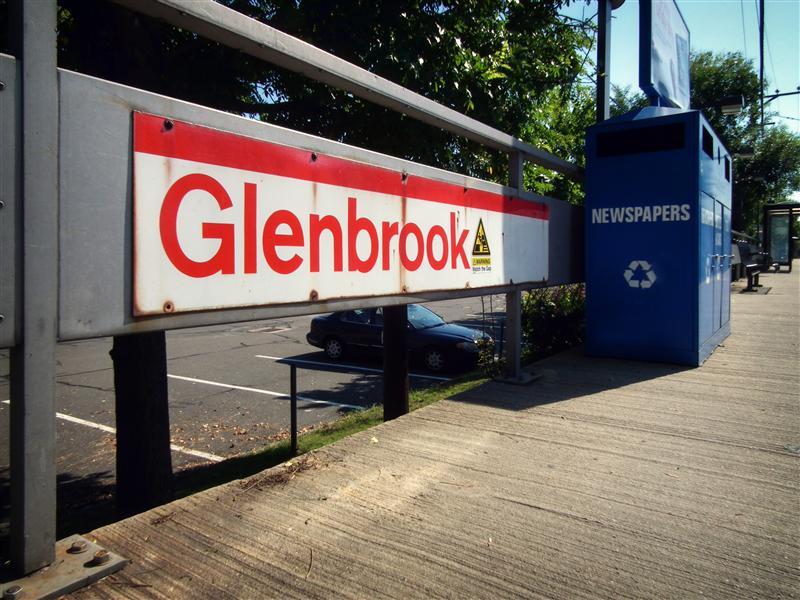 If there was ever to be a competition for the most seemingly mundane station on the New Haven Line, the station our tour visits today, Glenbrook, would be high on the list of contenders (likely along with Ansonia). Glenbrook is along the New Canaan Branch, just north of Stamford, and about 35 miles from Grand Central. The four-car platform is wedged between two grade crossings, and faces the backs of several buildings. Besides the bus stop style shelters on the platform, there is no canopy, and no protection from the elements. Like the rest of the stations along the branch (with the exception of New Canaan) there are no ticket vending machines at Glenbrook. The only other things one can actually find on the platform are the typical station trash bins, a few wire benches, and a newspaper vending machine that looks like it is never filled.