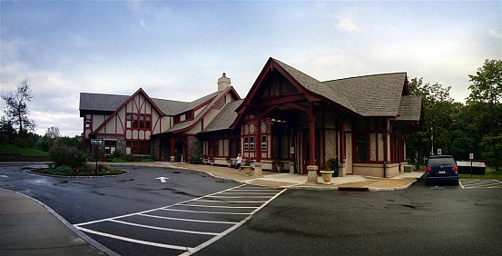 The Briarcliff Manor Public Library as it is today. The right portion in the photo is the original 1909 station, the left is an addition completed in 2009.