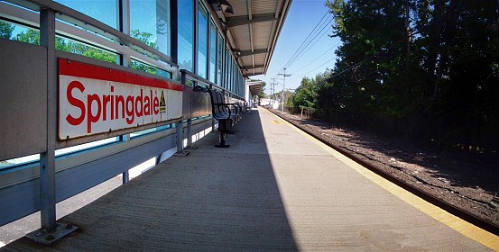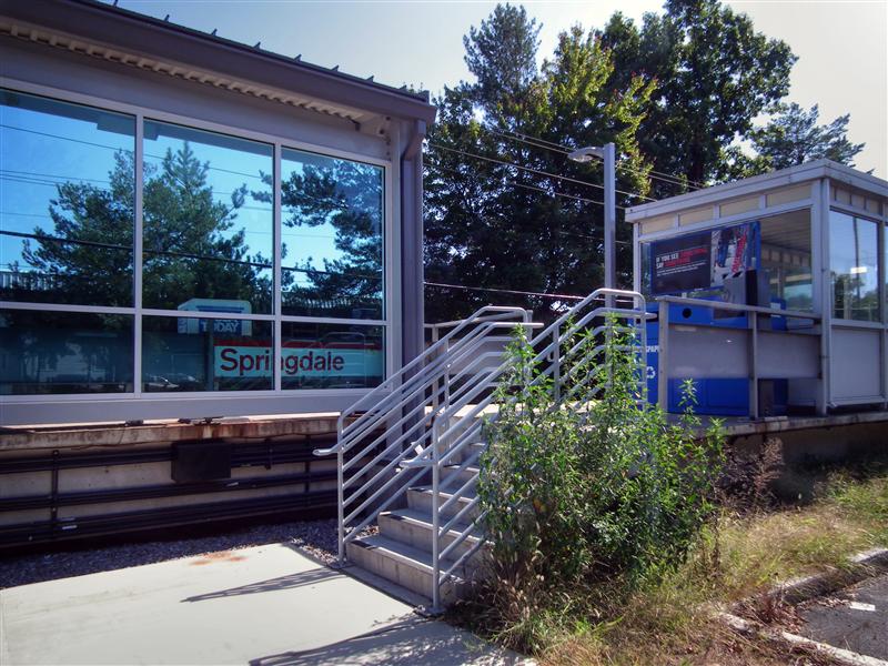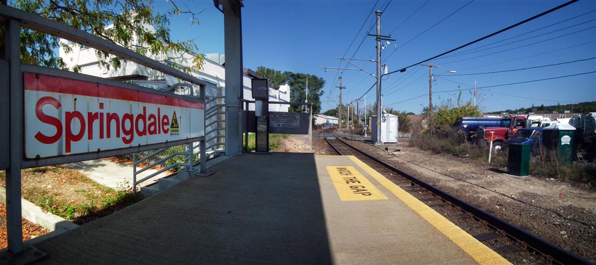 Springdale is about 37 miles from Grand Central, and has an average travel time of just under an hour during peak periods. During off-peak hours a transfer at Stamford is most likely necessary, increasing travel time to around an hour and a half. The station doesn’t have much in terms of amenities (there are no TVMs, for example), but it does have a brand new 400-foot canopy that was built in 2010, at a cost of around a million dollars. The canopy does quite a bit to make the station look more substantial and attractive, something that fellow branch line stations Glenbrook and Talmadge Hill lack (Glenbrook, however, seems to be next in line to get an upgrade).
