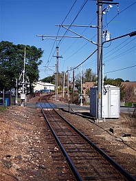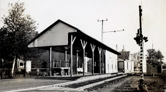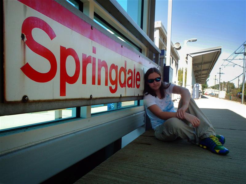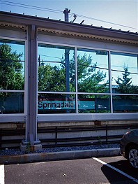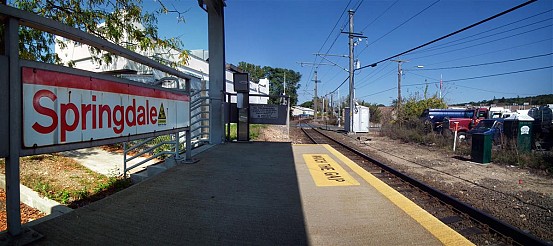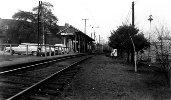 Springdale station, June 1966. Although this older station had a canopy, it was taken down when newer, high-level platforms were constructed. The station was renovated in 2010, and a canopy installed, protecting commuters from the elements.