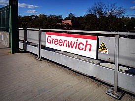 When I first arrived at Greenwich, I hiked up a big set of stairs at the western end of the platform. While that far end of the platform is a little beat up, the opposite end is a bit nicer, and has views of Borealis, a sculpture installed at the adjacent Greenwich Plaza.