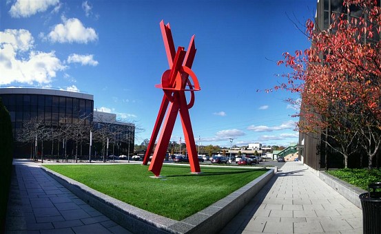 Although the sculpture is not exactly part of the station, it is definitely visible to those that commute. While photographing the station, I felt myself drawn to it. Borealis, installed in Greenwich in 1999 (though completed in 1988), is the work of artist Mark di Suvero. When installed, a crane was brought in to lift the 29-foot-tall sculpture, made of welded steel, into place. Borealis also has a sister piece, called Aurora which is on display at the National Gallery of Art’s Sculpture Garden.