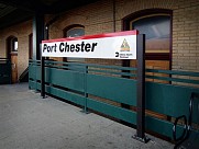 Today’s visit on the New Haven Line is to Port Chester, which I must admit, is one of my favorites along the line. If one was to compile a list of the more noteworthy New Haven Line stations, Port Chester probably wouldn’t be on it… yet it would rank high on my list. Not only did I love the historical station building, but I also loved the new art on the platform, courtesy of Arts for Transit. On the blog, I’ve already mentioned my love of the “leaf people” at Port Chester, what I suppose you would call a grotesque, or a figure carved into the side of the station building. I can’t really think of too many other Metro-North stations that have similar carvings, so they are rather unique, and give a little bit of character to Port Chester.